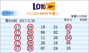 | 3月28日の運命数は「8」と「7」です。該当数字は、「08」・「18」・「28」・「07」・「17」・「27」の6つです。出現チャートでの注意数字は、「07」・「08」・「09」・「12」・「16」・「17」・「18」・「20」・「25」・「28」・「29」など。今回の運命数がほぼ入っています。となると軸数字の選択が難しくなります。分布図の出現形態から、回数的には4回の「17」とまだ1回という「28」を軸数字として選びました。買い目の5口は最新の相性数字から組み立てました。 |