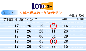 | 12月17日の運命数は「5」・「3」の2つ。該当数字は、「05」・「15」・「25」・「03」・「13」・「23」の6個です。チャートから見た注意数字は、「03」・「05」・「08」・「13」・「17」・「18」・「19」・「22」・「23」・「24」。1056回の軸数字候補はこの中から「03」と「23」を選びました。「03・23」は465Wの中で過去42回出現で上位の組み合わせです。買い目はミニロトパーフェクトデータの最新相性数字からの5組です。 |