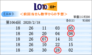 | 2月18日の第1064回を狙う予測数字は、斜線成立数字の中から「02」・「04」・「08」・「11」・「15」・「16」・「18」・「19」・「21」・「23」・「25」・「26」・「28」・「29」・「31」となりました。1063回からの連続数字は、「18」と「26」を軸数字に。高確率数字は「19」と「31」を軸数字に。低確率数字は、「15」と「21」を軸数字に選びました。それぞれ5口の買い目はミニロトパーフェクトデータからの相性数字で組み立てました。今回同じ段数で斜線が交差した数字は「16」の1つのみ。5口の買い目はミニロトパーフェクトデータの最新相性数字より組み立てました。 |