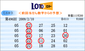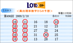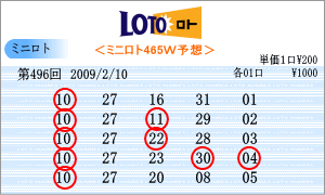 | 2月10日の運命数は、「8・6・2・0」なので対象数字は、08・18・28・06・16・26・02・12・22・10・20・30 となります。出現チャートからの注意数時は「05」・「07」・「10」・「22」・「27」です。ここから連続数字の可能性をチェックして496回の軸数字を「10」と「27」としました。 | |||||||