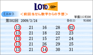 | 3月24日の運命数は「4」・「8」・「3」で、対象数字は、04・14・24・08・18・28・03・13・23 です。チャートからの注意数字は、13・16・17・21・22・27・28などです。ここからは「13」・「28」が浮上しますが、連続しそうな数字として、「17」・「22」を軸数字に選びました。 |