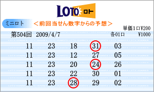 | 503回では本数字に連続数字がありませんでしたが、今回は、「11」・「18」・「「21」・「23」・「27」などが出現予測範囲に入ってきました。04・10・11・12・14・17・18・19・21・22・23・24・26・27・28 となったのです。連続候補は「11」と「23」。高確率は「17」・「22」。低確率は「18」・「19」をそれぞれ軸数字としました。 |