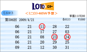 | 4月21日の運命数は「1」と「3」です。対象数字は「01」・「11」・「21」・「31」・「03」・「13」・「23」の7つです。この中では「13」が直近30回で7回。「23」が8回とこの2つの数字は要注意です。次に、出現チャートからは、「06」・「16」・「21」・「25」が斜線から出てきました。この中から、505回を狙う軸数字を「06」と「21」に決めました。 |
