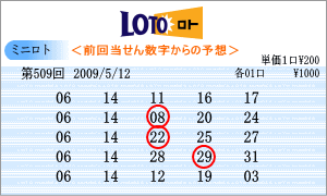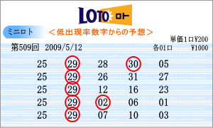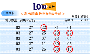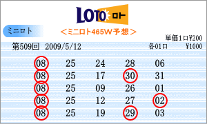 | 5月12日の運命数は、「7」・「8」・「5」ですので、対象数字は、「07」・「17」・「27」・「08」・「18」・「28」・「05」・「15」・「25」です。チャートからの注意数時は、「06」・「09」・「10」・「14」・「25」・「26」・「31」と今回はたくさん出てきました。この中から、「08」と「25」を軸数字として選択しました。 |