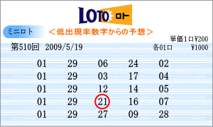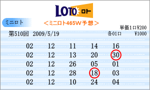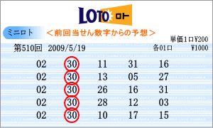 | 510回を狙う出現予測範囲は、「01」・「02」・「03」・「04」・「05」・「07」・「08」・「12」・「13」・「28」・「29」・「30」・「31」となりました。連続候補は、「02」と「30」。高確率は、上位の数字がない中、「05」と「12」。低確率は、「01」・「29」をそれぞれ軸数字としました。 |