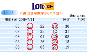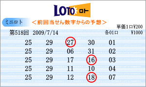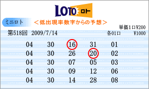 | 7月14日の運命数は、「7」・「5」・「9」で、「07」・「17」・「27」・「05」・「15」・「25」・「09」・「19」・「29」が対象数字です。出現チャートの注意数字は、「04」・「05」・「12」・「28」・「29」・「30」などです。ここから、518回を狙う軸数字を選ぶのですが、重複し、なおかつ連続数字の「29」。もう1つは、「12」を選びました。 |