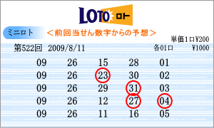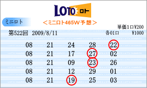 | 8月11日の運命数は、「1」と「8」の2つです。対象となる数字は、「01」・「11」・「21」・「31」・「08」・「18」・「28」の7つです。出現チャートの注意数字は、「04」・「08」・「09」・「15」・「25」・「26」などが斜線から見てとれます。この中から、今回は、「08」と「21」を軸数字に選びました。 |