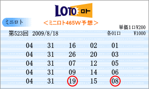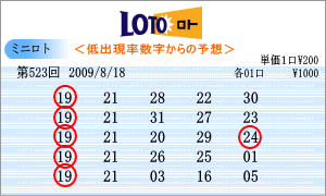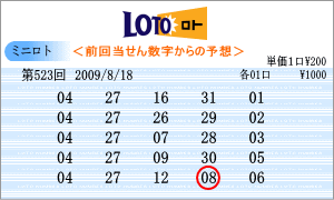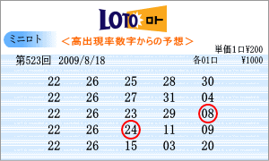 | 8月18日の運命数は「1」・「4」・「6」・「0」の4つ。対象となる数字は、「01」・「11」・「21」・「31」・「04」・「14」・「24」・「06」・「16」・「26」・「10」・「20」・「30」です。出現チャートからの注意数字は、「04」・「19」・「22」・「27」・「31」が斜め線から見てとれます。3回連続のかかる「04」がありますね。今回軸に選びました。 |