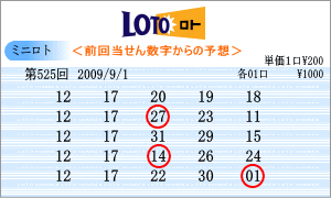 | 525回の出現予測範囲は、「07」・「08」・「09」・「10」・「11」・「12」・「16」・「17」・「18」・「21」・「22」・「23」・「24」となりました。連続3回目となるかもしれない「17」と「24」がともに入っています。その中から連続候補の軸は、「12」と「17」としました。高確率は、ベスト数字1位と2位の「11」・「16」。低確率は、ワースト数字1位と3位の「07」・「09」を軸数字としました。 |