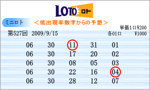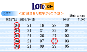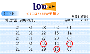 | 9月15日の運命数は、「1」と「7」です。対象となる数字は、「01」・「11」・「21」・「31」・「07」・「17」・「27」となります。出現チャートからの注意数字は、「01」・「04」・「05」・「16」・「21」・「30」・「31」となりました。運命数と注意数字、それに3回連続のかかる「21」をまず1つ。もう1つは、運命数と斜線から気になった「31」を軸にしました。 |