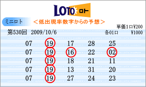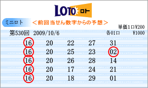 | 10月6日の運命数は「6」と「5」です。対象となる数字は、「06」・「16」・「26」・「05」・「15」・「25」です。出現チャートからの注意数字は、斜め線で見る限りは前回の本数字が候補として出てきました。3回連続の可能性をかけて「14」と運命数から「06」を選びました。 |