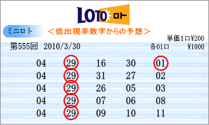 | 前回の本数字をチャートに書き込み555回の出現予測範囲を絞りました。「03」・「04」・「05」・「08」・「09」・「10」・「22」・「23」・「24」・「25」・「27」・「28」・「29」となりました。チャートでの斜線は「28」・「29」・「30」あたりに集中してしまいました。連続候補は、「09」・「15」・「28」・「02」とあるのですが、「09」と「28」を軸数字としました。高確率は5位の「22」と6位の「10」を軸に。低確率は3位の「29」と6位の「04」を軸数字としました。554回では3つも連続数字が出現しましたが、今回はそうならないであろうと読んでいます。 |