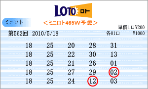 | 5月18日の運命数は、「1」・「9」・「5」です。「01」・「11」・「21」・「31」・「09」・「19」・「29」・「05」・「15」・「25」が対象となる数字です。出現チャートからの注意数字は、「01」・「02」・「05」・「06」・「15」・「18」・「25」などです。「06」と「25」は斜線がきれいに交差しています。562回を狙う軸数字は「18」と「25」を選びました。 |