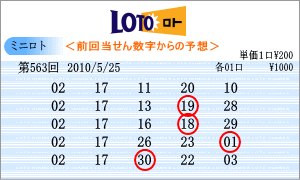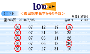 | 第563回の出現予測範囲は20番以内の数字ばかりになってしまいました。「01」・「02」・「03」・「06」・「07」・「08」・「11」・「12」・「13」・「14」・「15」・「16」・「17」・「18」となりました。連続候補は、「02」と「17」を軸数字としました。高確率は、ベスト1位の「11」と2位の「16」を軸数字としました。低確率は、ワースト2位の「01」と3位の「07」を軸数字にしました。買い目5口は、ミニロトパーフェクトデータより組み立てました。 |