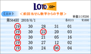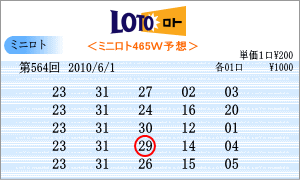 | 6月1日の運命数は、「1」と「3」です。「01」・「11」・「21」・「31」・「03」・「13」・「23」が対象となる数字です。チャートからの注意数字は、「01」・「05」・「06」・「19」・「29」・「30」・「31」などです。斜線がきれいに交差している数字が少ないです。その中から、直近30回で11回出現で1位の「23」と運命数と重複した「31」を軸数字としました。 |