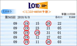 | 6月8日の運命数は、「9」と「3」です。「09」・「19」・「29」・「03」・「13」・「23」が該当数字です。出現チャートからの注意数字は、「09」・「17」・「19」・「22」・「23」・「29」などです。表を見ると斜線がきれいに描かれています。今回を狙う軸数字は、「09」と「19」を選びました。「19」は3回連続をあると見ました。 |