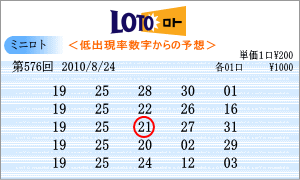 | 8月24日の運命数は「1」・「3」・「8」で、「01」・「11」・「21」・「31」・「03」・「13」・「23」・「08」・「18」・「28」が対象数字です。チャートからの注意数字は、「10」・「11」・「19」・「20」・「21」で20番台に集まりました。その中から「11」と「21」を軸数字としました。ともに今年3回しか出ていない数字です。 |