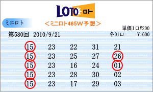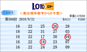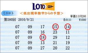 | 第580回を狙う予測範囲は、「03」・「04」・「07」・「08」・「09」・「14」・「15」・「16」・「17」・「17」・「22」・「23」・「24」となりました。直近30回で11回という「23」と「17」を連続候補としました。高確率はベスト2位の「16」と4位の「22」を。低確率はワースト1位の「09」と3位の「07」をそれぞれ軸数字としました。 |