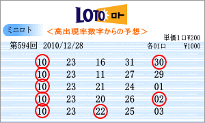 | 予測範囲の数字は、「07」・「08」・「10」・「11」・「12」・「13」・「14」・「15」・「21」・「22」・「23」・「24」・「25」・「27」・「28」と幅広く揃いました。連続候補は、「11」と「22」を軸数字としました。高確率は、ベスト数字3位の「10」と「23」を軸に。低確率は、ワースト5位の「13」と「15」を軸数字としました。 |