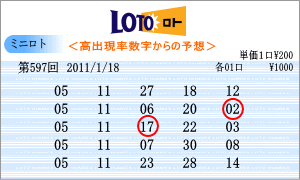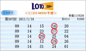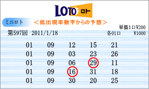 | 1月18日の運命数は、「4」と「9」です。「04」・「14」・「24」・「09」・「19」・「29」の6つの数字が対象となります。チャートからの注意数字は、「05」・「06」・「09」・「10」・「11」・「13」・「14」などです。この中から軸数字は、「09」と「14」を選びました。 |