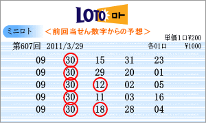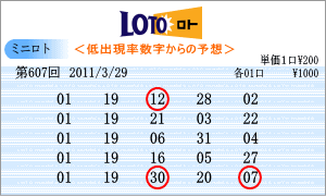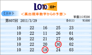 | 607回を狙う数字は、「01」・「08」・「09」・「10」・「19」・「20」・「21」・「22」・「23」・「29」・「30」・「31」となりました。連続候補は、「09」と「30」を軸数字としました。高確率は、ベスト数字3位の「22」と4位の「10」です。低確率は、ワースト数字3位の「01」と5位の「19」をそれぞれ軸数字としました。 |