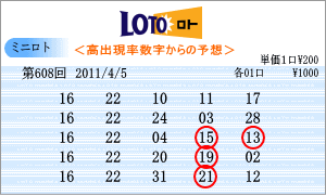 | 4月5日の運命数は、「1」と「8」です。「01」・「11」・「21」・「31」・「08」・「18」・「28」が対象数字です。出現チャートからの注意数字は、「07」・「08」・「09」・「30」・「31」です。チャートの斜線がきれいに交差する「09」と「31」を今回の軸数字としました。過去18回この組み合わせがありました。 |