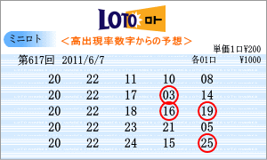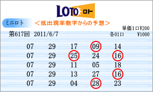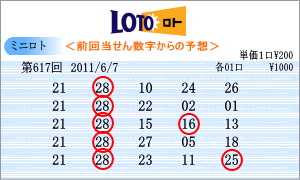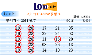 | 6月7日の運命数は、「7」と「8」です。「07」・「17」・「27」・「08」・「18」・「28」が該当数字です。チャートからの注意数字は「18」・「19」・「20」・「22」・「24」・「27」・「28」などです。運命数と注意数字から、昨年13回出現し、今年まだ5回の「28」。もう1つは、昨年10回で今年5回の「19」を軸数字として選びました。 |