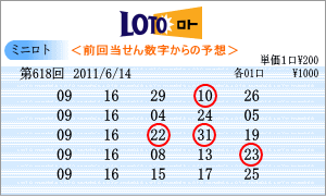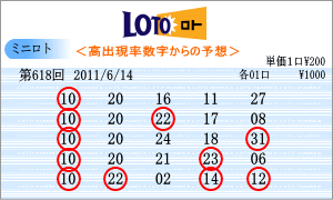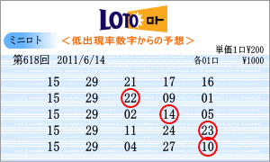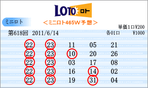| 6月14日の運命数は「2」と「3」です。「02」・「12」・「22」・「03」・「13」・「23」の6つの数字です。チャートからの注意数字は「09」・「16」・「19」は斜線が交差しています。「03」・「04」・「20」・「28」・「29」などです。この中から今回を狙う軸数字は「22」と「23」を選びました。「22」は今年3回、「23」も同じく3回の出現数字です。 |