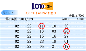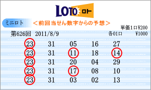 | 第626回を狙う予測範囲は、「01」・「05」・「06」・「07」・「18」・「19」・「20」・「21」・「22」・「23」・「24」・「26」・「27」・「30」・「31」となりました。連続候補は、「23」と「31」を軸に。高確率は、ベスト数字4位の「22」と5位の「20」を軸に。低確率は、ワースト数字2位の「01」と3位の「07」を軸数字としました。 |