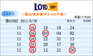 | 8月30日の予測範囲は、「01」・「09」・「10」・「11」・「16」・「17」・「18」・「19」・「20」・「21」・「27」・「31」となりました。連続候補は、「10」と「20」で3回連続を狙いました。高確率は、ベスト数字1位の「11」と2位の「16」を軸に。低確率は、ワースト数字1位の「09」と2位の「01」を軸数字としました。今回はベスト数字とワースト数字でともに1位2位の数字が揃いました。 |