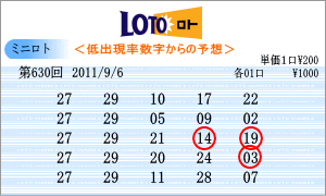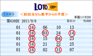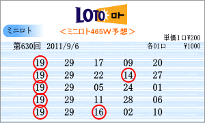 | 9月6日の運命数は、「9」と「1」です。「09」・「19」・「29」・「01」・「11」・「21」・「31」の7つです。注意数字としては、629回の本数字だった「01」・「03」・「16」・「29」はきれいな斜線で交差しています。軸候補として「19」・「29」・「01」・「31」の4つが出ました。その中から今回の軸数字は、「19」と「29」を選びました。 |