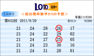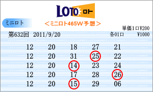 | 9月20日の運命数は、「2」と「5」です。「02」・「12」・「22」・「05」・「15」・「25」が該当数字です。「15」・「25」は先週の本数字でした。出現チャートからの注意数字は、「03」・「15」・「18」・「19」・「20」・「25」などです。今回の軸候補は、「12」・「15」・「19」・「20」と4つでてきましたが、その中から「12」と「20」を軸数字としました。 |
