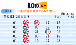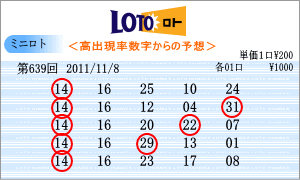 | 11月8日のミニロトを狙う予測範囲は、「01」・「02」・「14」・「15」・「16」・「17」・「18」・「19」・「26」・「27」・「29」・「31」となりました。連続候補としては、「18」と「27」を軸数字としました。高確率は、ベスト数字2位の「16」と3位の「14」を軸に。「14」は現在16回出現のトップ数字です。低確率は、ワースト数字3位の「01」と4位の「29」が軸数字です。 |