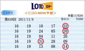 | 11月8日の運命数は、「5」と「6」です。該当する数字は、「05」・「15」・「25」・「06」・「16」・「26」の6つです。出現チャートからの注意数字は、「01」・「02」・「16」・「17」・「19」・「27」・「31」の7つ。ここから、「16」・「19」・「27」・「31」の4つに絞りこみました。運命数から「16」。注意数字から「19」を今回の軸数字としました。 |
