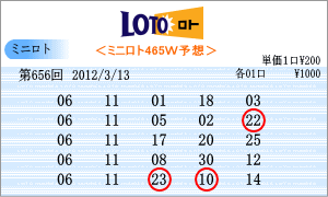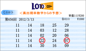 | 3月13日の予測範囲は、「06」・「07」・「08」・「09」・「10」・「11」・「12」・「13」・「14」・「17」・「18」・「19」・「23」・「24」・「25」となりました。連続候補は、「12」と「18」を軸数字としました。高確率は、ベスト数字1位の「11」と4位の「14」を軸に。低確率は、ワースト数字1位の「09」と2位の「07」を軸数字としました。 |