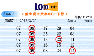 | 3月20日の予測範囲は、「03」・「04」・「05」・「06」・「07」・「09」・「10」・「11」・「14」・「15」・「16」・「22」・「23」・「24」・「26」となりました。連続候補は、分布図から「15」と「23」を軸数字としました。高確率は、ベスト数字1位の「11」と2位の「16」を軸に。低確率は、ワースト数字1位の「09」と2位の「07」を軸数字としました。 |
