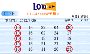 | 3月20日の運命数は「2」・「6」・「0」の3つです。該当する数字は、「02」・「12」・「22」・「06」・「16」・「26」・「10」・「20」・「30」の9つの数字です。出現チャートからの注意数字は、「10」・「11」・「14」・「15」・「16」・「26」などです。候補的には、「10」・「20」・「16」・「26」の4つ。ここから今回の軸は「10」と「16」を選びました。 |