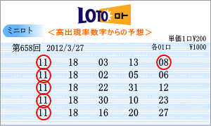 | 3月27日の運命数は、「1」・「7」・「8」の3つ。「01」・「11」・「21」・「31」・「07」・「17」・「27」・「08」・「18」・「28」が該当します。直近での出現回数からいくと、トップは、「18」。2連続がかかる数字です。この次にくるのが「11」。やはり直近30回中で10回の出現です。あとは、1回の出現していない「17」。「31」、「08」などが気になります。軸数字は、「11」と「18」で買い目を組みました。 |
