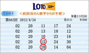 | 4月24日の予測範囲は、「01」・「02」・「03」・「05」・「06」・「08」・「09」・「13」・「18」・「19」・「20」・「21」・「29」となりました。連続候補は、「09」・「19」・「02」・「20」と4つありましたが、「02」と「20」を軸数字としました。高確率はベスト数字が見当たらないので、出現回数の多い、「18」と「19」を軸に。低確率は、ワースト数字1位の「09」と2位の「01」を軸数字としました。 |