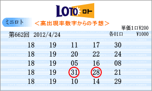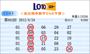 | 24年4月24日と数字的にはつい狙ってみたくなる「2」と「4」の数字です。運命数はと見ると、「4」・「1」・「9」なんです。「04」・「14」・「24」・「01」・「11」・「21」・「31」・「09」・「19」・「29」が該当数字です。運命数が「4」と気になるところですが、数字的には、「11」・「21」・「09」・「19」の4つが候補数字なのです。今回は4つの中から、「09」と「11」を軸数字としました。 |