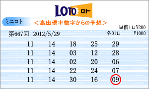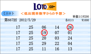 | 5月29日の予測範囲は、「10」・「11」・「12」・「14」・「17」・「18」・「23」・「24」・「25」・「28」・「29」・「30」となりました。絞りすぎているかもしれませんが、候補がはっきりしている方が軸数字が選択しやすいとも言えます。連続候補は、「24」・「29」を軸に。高確率は、ベスト数字1位の「11」と4位の「14」を軸数字としました。低確率は、ワースト数字5位の「25」と2回の「17」を軸数字にしました。 |