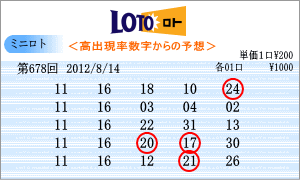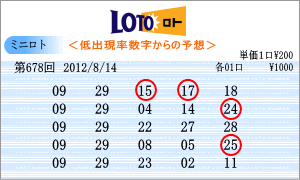 | 8月14日の予測範囲は、「07」・「09」・「10」・「11」・「15」・「16」・「17」・「18」・「19」・「23」・「24」・「25」・「29」・「30」・「31」となりました。連続候補は、「23」・「24」を軸数字に。高確率は、ベスト数字1位の「11」と2位の「16」を軸に。低確率は、ワースト数字1位の「09」と3位の「29」を軸数字にしました。 |