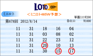 | 8月14日の運命数は、「1」と「5」。該当する数字は、「01」・「11」・「21」・「31」・「05」・「15」・「25」・「35」の8つの数字です。チャートからの注意数字は、「09」・「10」・「11」・「17」・「18」・「19」・「30」・「31」などです。「1」からなら「11」と「31」。「5」からなら「15」と「25」という選択でしょうか。今回は「11」と「31」を軸数字にしました。 |