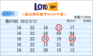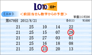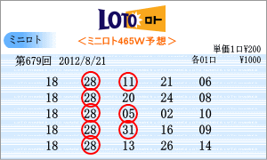 | 8月21日の運命数は、「9」と「8」です。「09」・「19」・「29」・「08」・「18」・「28」の6つの数字が該当します。チャートからの注意数字は、「14」・「18」・「23」・「25」・「26」・「28」などです。直近30回での数字からは「09」の10回出現がトップです。チャートからは「18」・「19」・「08」・「28」が浮上します。今回はこの中から「18」と「28」を軸数字としました。 |