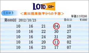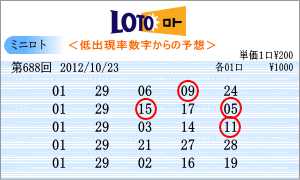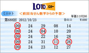 | 第688回を狙う予測範囲は、「01」・「02」・「03」・「08」・「09」・「10」・「16」・「17」・「21」・「22」・「23」・「24」・「25」・「29」・「30」となりました。連続候補は、「09」と「24」を軸に。高確率は、ベスト数字2位の「16」と4位の「10」を軸数字に。低確率は、ワースト数字2位の「01」と3位の「29」を軸数字としました。 |