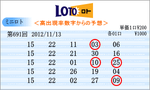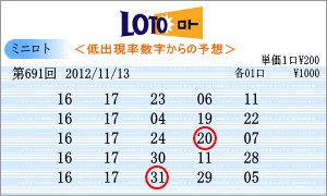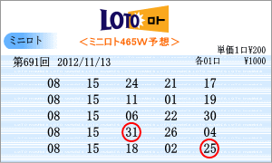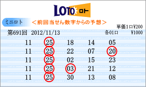 | 11月13日の予測範囲は、「05」・「08」・「10」・「11」・「12」・「15」・「16」・「17」・「21」・「22」・「23」・「24」・「25」・「26」となりました。連続候補は、「11」と「25」を軸に。高確率は、10回出現の「15」と「22」を軸数字に。低確率は、5回出現の「16」と「17」を軸数字としました。 |