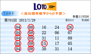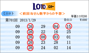 | 前回当せん数字からの予想が4等2口的中!! 低出現率数字からの予想が4等1口的中!! |