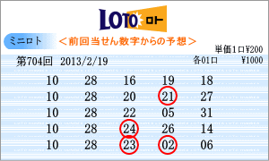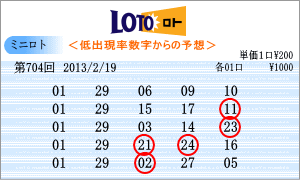 | 2月19日の予測範囲は、「01」・「02」・「03」・「04」・「10」・「11」・「14」・「15」・「16」・「17」・「22」・「23」・「27」・「28」・「29」・「30」・「31」となりました。703回の本数字が全般的な出現でしたので予測範囲も多くなりました。連続候補は、3回連続を狙う「10」と「28」を軸数字に。高確率は、ベスト数字1位の「11」と4位の「14」を軸に。低確率は、ワースト数字1位の「01」と2位の「29」を軸数字としました。 |