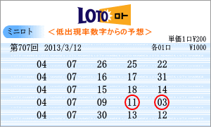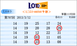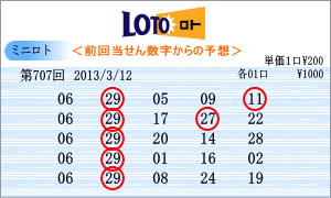 | 3月12日の運命数は、「9」と「4」です。該当数字は、「09」・「19」・「29」・「04」・「14」・「24」の6つ。チャートからの注意数字は、「04」・「05」・「09」・「12」・「14」・「17」・「19」・「20」・「24」・「26」・「28」・「29」・「30」です。数字の出現状況から、「09」・「19」・「14」・「24」を検討し、今回の軸数字は「14」と「19」としました。「19」は未出現数字ですが狙ってみました。 |