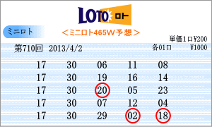 | 4月2日の運命数は、「1」・「7」・「0」の3つ。該当数字は、「01」・「11」・「21」・「31」・「07」・「17」・「27」・「10」・「20」・「30」の10個の数字です。チャートからの注意数字は、「03」・「04」・「06」・「13」・「15」・「16」・「17」・「29」・「30」など。候補は、「10」・「11」・「20」・「17」・「30」となります。この中から今回の軸は、「17」と「30」としました。 |